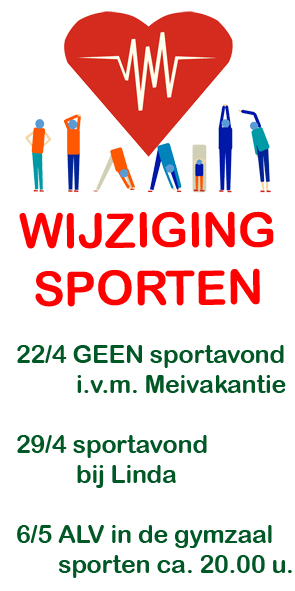 Op de woensdagavond wordt er van 19.30 uur tot 20.30 uur gesport. De sportzaal “Samen op Weg”, wordt gebruikt aan de Prinses Marijkestraat 71 in Alphen aan den Rijn.