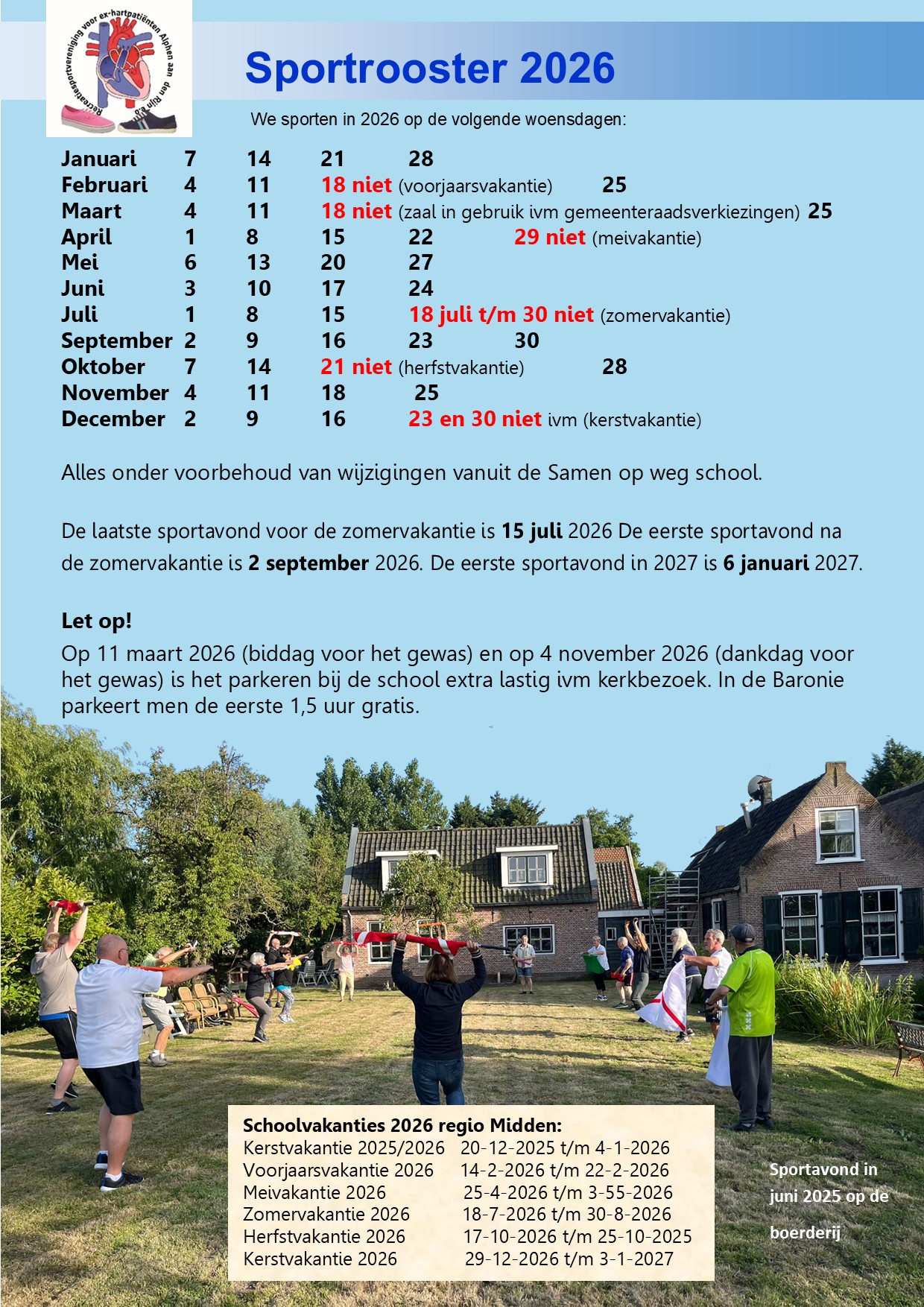 i.v.m. het slecht weer gaat het sporten op 7 januari